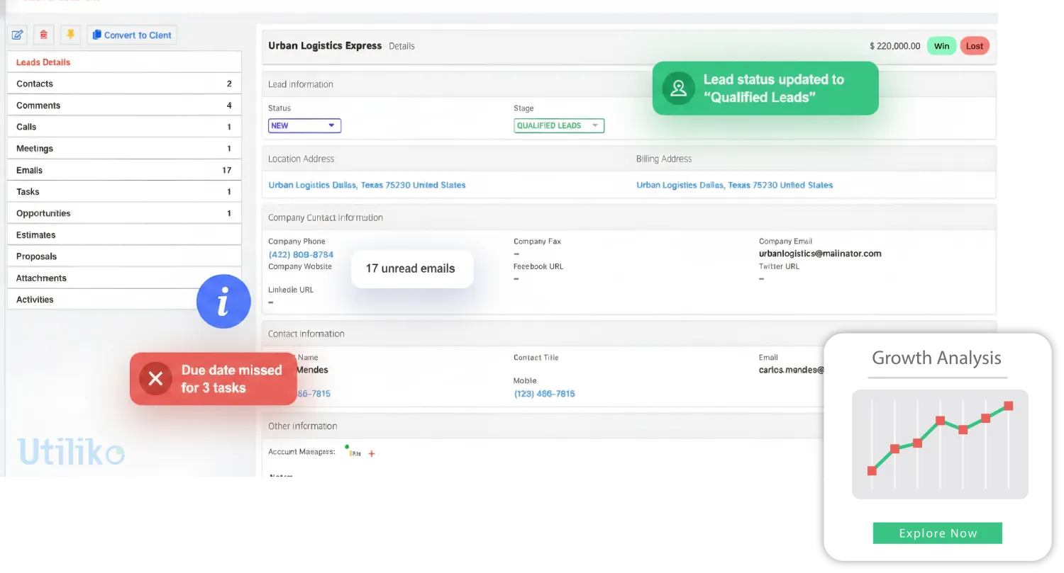 Utiliko puts everything—from your first lead to your final invoice in one organized space.
