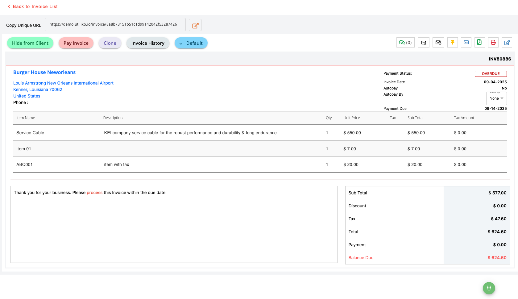 Utiliko sends automatic reminders based on your schedule before the due date, on the due date, and after. You control the timing and messaging. Most clients pay before you’d even think to follow up manually. For those who don’t, you’ll know exactly who owes what and for how long.