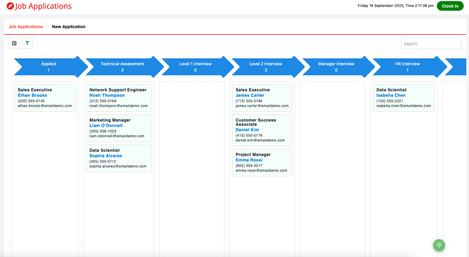 From job posting to offer letter. Track applicants through screening, interviews, and final selection. Your hiring team collaborates in one place, candidates get timely updates, and the best talent doesn’t slip away because someone forgot to follow up.