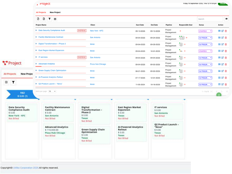 Utiliko connects project management, time tracking, ticketing, billing, and resource allocation in one unified platform. Stop integrating point solutions and start working from a system built to work together.